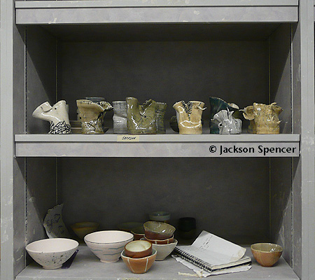 My 15 year old son, Jackson, is very creative and gifted in pottery. Here are just a few of his recent creations (top shelf). It’s interesting to see how different they are from traditional pottery. Since we’re on our way to pick him up from school (and he may have more), I’m only posting twice this week, as we’ll be on the road. It’s a long drive to Tennessee.
