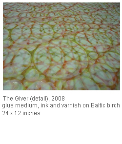Cell-Like Paintings made with glue medium by Kevin Kepple (text from the Washington Post):