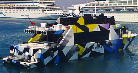 Just wanted to follow up on my previous post, Traveling in Style about the “Fine Art Yacht.” While that one is a traveling art exhibit, this one, belonging to Greek Tycoon, Dakis Jaonnus, is a traveling art display — visible from the outside as linked on Art Observed. This might remind my boys of legos, at least it does for me.