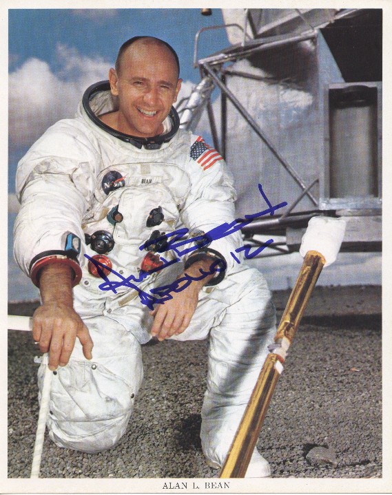 I clipped the story about Alan Bean, the fourth man to walk on the moon. Since it’s the 40th anniversary of the first walk on the moon by Apollo 12, I thought it would be fitting to post. He no longer considers himself an astronaut, even though he was there and uses his understanding about the lighting on the moon for accuracy in his paintings, throwing in a little moon dust here and there. I like that he sees himself now as a full time artist.