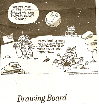 This is a good comic that states a lot about the government run health care. I couldn’t resist the “out of this world” connection. You can even find art in a health care comic.