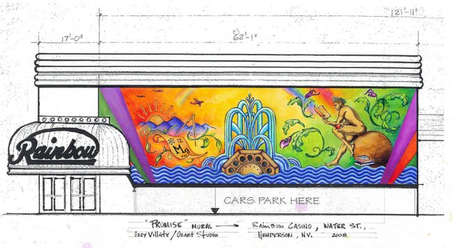 For another artistic water reference, here’s an illustrated water scene mural by Ozzy Villate that looks interesting and colorful, if you’re going to the Rainbow Club in Las Vegas. Maybe it’s completed by now.