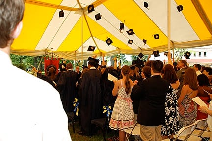 The first event, The Angies’s was a roast that the teachers give to each of the Senior students. The teachers sing, dance and read poetry to their advisees. I may be biased but Jackson’s I thought was one of the best performances by his advisor, Robie Jackson (coincidental name, who happens to be the Drama / Theater teacher). She’s great and we would have never made it through this year without her assistance. She started her performance with her hair pulled back and then pulled some of her hair out covering her face. The Sonic Youth jammed in the background and she proceeded to say things like “Texture — Jackson Spencer sees colors no one else sees….Dangerously Bright.” It was truthful poetry. We weren’t sure he was graduating until that Saturday.