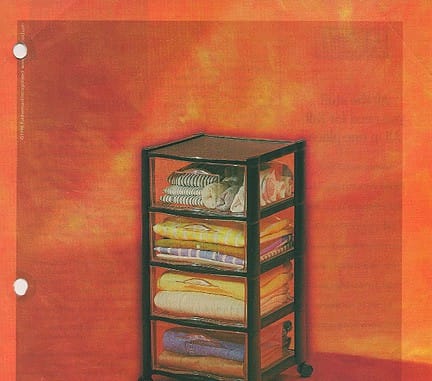 I just found this clipping from my “ideabook” of all sorts of visuals to show clients. This helps narrow the field for potential finishes, etc. This would be a perfect solution to incorporate the yellow, orange and red colors of the maple leaves mural above in a decorative colorwash finish. It came from a storage drawer ad in a magazine. You never know where artists are going to find inspiration….
