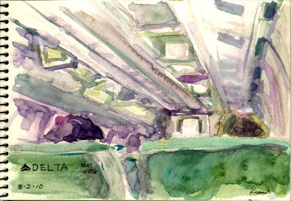 I love to sketch and I do draw a lot of artwork for my business. I just haven’t had the time to do a lot of sketching lately. Ideally, I should be doing at least one sketch a day. I was inspired to get back into it and while on vacation when I saw the blog Urban Sketchers. This is fantastic! It’s not just urban sites but sketches of all different locations, for example: a view of the cabin while seated inside an airplane, people at a concert, landscapes and buildings and the First International Portland Urban Sketchers Symposium (I’m glad to know about this).