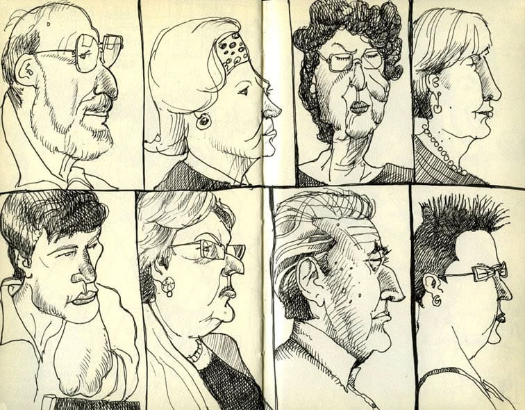 Individual artists posts their entries with their sketches. This DeBarge Music entry, “The first thing I notice about classical music is the second it starts playing, everyone falls asleep,” about attending a concert by Tommy Kane cracked me up, because it’s so true — what I notice when I’m not falling asleep myself. Of course sketching those who are listening/falling asleep will keep you awake.
