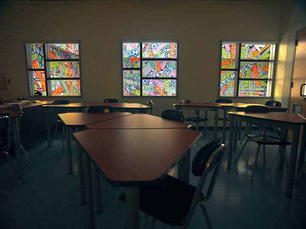 And since this is painted at a school, it is incorporated nicely into the setting as such.