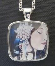 Her work reminds me or Erté and also of Giovanna Cassanelli, the artist who’s pendant I purchased within the Vatican. She paints famous Italian female portraits in miniature. She was the only painter selling their hand-painted wares within the walls of the Vatican that I noticed and she was extremely talented. She must have been in her late 60’s then (over 10 years ago) so I wonder if she is still there or around. I hope so but if not, I feel as if some of her handiwork has lived on in the small treasure that I had just happened to discover while in Rome.