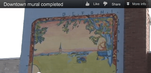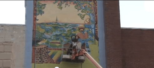 An exact opposite reaction has occurred with the newly painted mural in Fredericksburg, VA. It is prominently painted on the outside of the BikeWorld Building and on a main street approaching the town. The process took 4 long years and was vetted through the City Council and the Arts Commission. The neighborhood, businesses and the community have received it openly. The concept was to show a modern day woman on a bicycle overlooking a vista of the colonial town of Frederickburg and it was to be painted in a vintage style postcard, which gives the impression that it has existed for quite some time. It achieves it’s effect beautifully and fortunately for me, it’s not too far so I can actually see it. I like visiting the town of Fredericksburg as well. Its intriguing to see the progression of how this mural was painted in this video. I also have to commend the artists for involving the area’s art students to participate. What a learning experience. Funding for the mural as well as scholarship money for the students who participated was procured.