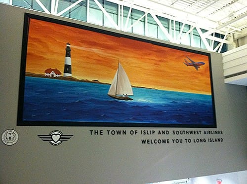 I’m always looking for examples of art on my travels. I found some in an unexpected place during my most recent business trip to Long Island, NY. I was passing through Islip’s MacArthur Airport and ran across these murals. This first one was very welcoming, as it greets as all the passengers as they disembark the plane to go and retrieve their luggage. This is one of the first things they see.