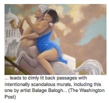 These “tongue in cheek” murals depicted almost every “inside scoop” scandal in DC. I had remember reading about this at the time and wanting to go check them out but before I could, the owners, same ones who own Sei and Oya, got so much flack that they had the artist Balage Balogh strategically paint over the most offending “parts“. Sax is still around and I still haven’t been but there’s always masquerade Thursdays to try! Yahoo!