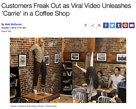 The movie Carrie just came out — just in time for Halloween. Here’s and elaborate PR stunt to get a video to go viral for marketing a related movie.