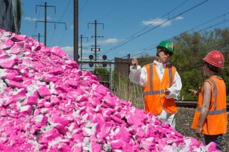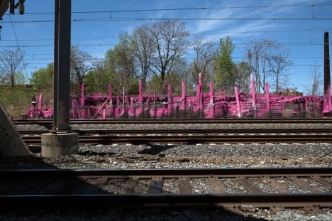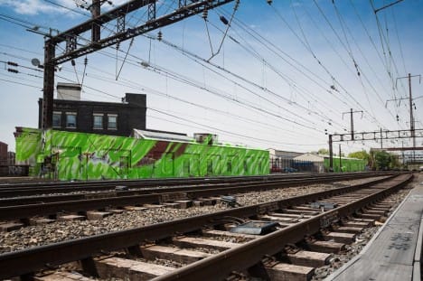 Berlin artist, Katharina Grosse, envisioned her Psycholustro project (as part of the Philadelphia Mural Arts Program) to get train passengers engaged with the passing landscape.