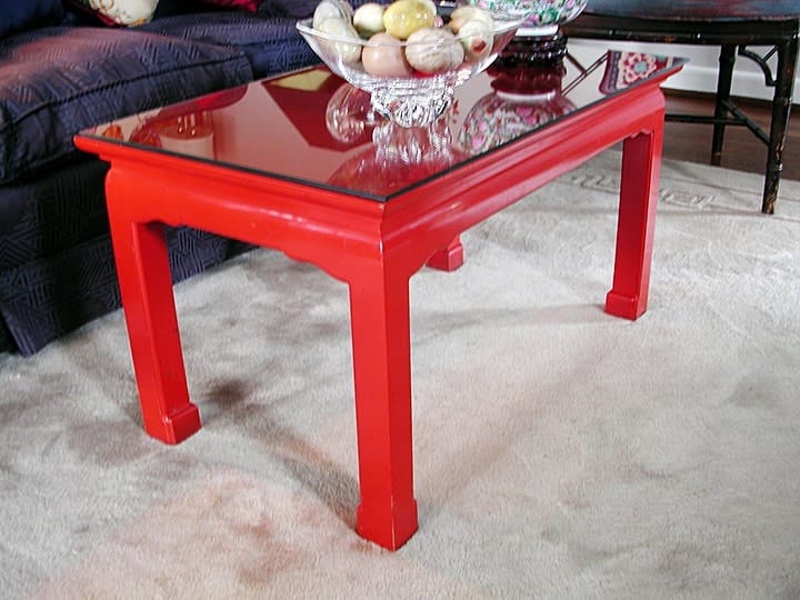 Red Lacquer Table Before, furniture, before & after transformations, finishes, close up finishes, detail, ashley spencer