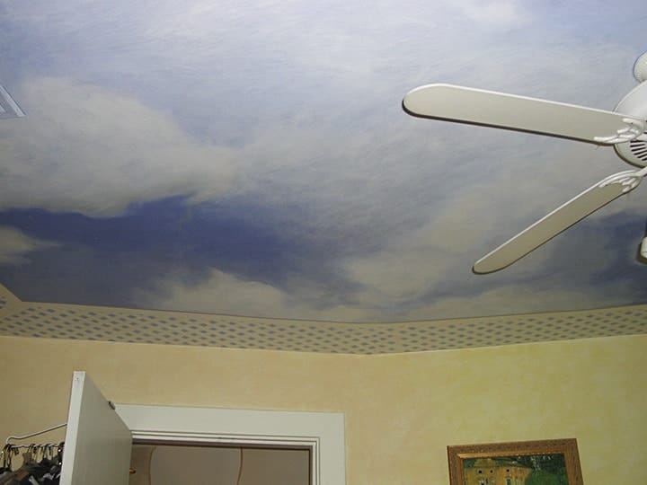 Bedroom ceiling sky in cloud mural painted by Ashley Spencer