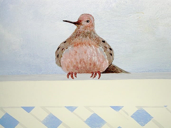Dove detail in ceiling cloud mural painted by Ashley Spencer