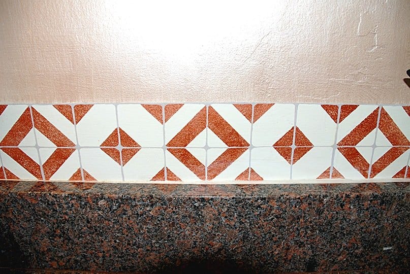 Faux Tile is a hand-painted faux finish that tricks the eye into thinking it is actual tile. Perfect for a kitchen backsplash.