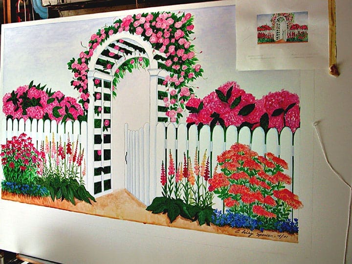 Category: Close Up Murals, Custom Painted Projects, Fine Art, MuralsTag: arbor, Fine Art, Floor cloth mural, flowers, murals, Nantucket
