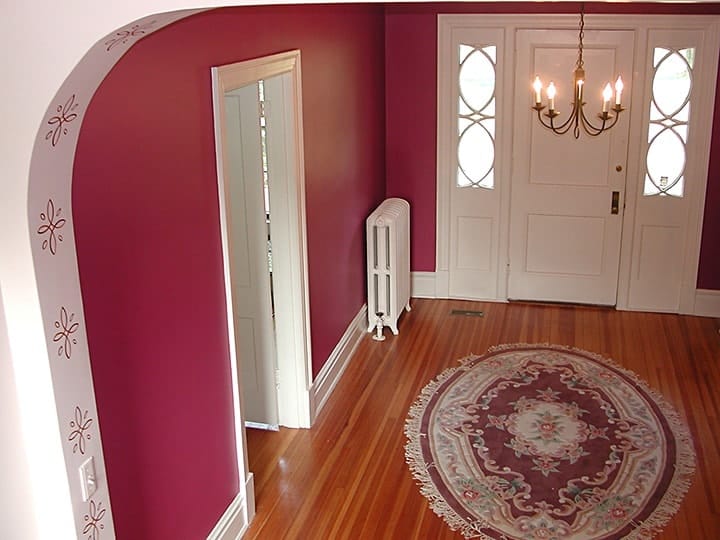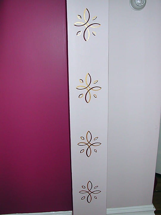 The custom-made stencil used reflects on the architectural design used in the side window panels on either side of the front door.